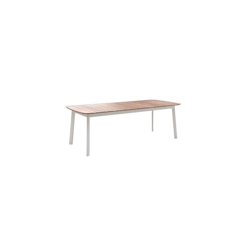 Tavolo da Giardino Emu Shine rettangolare/piano in teakTavolo Emu Shine con struttura in metallo colore Bianco e piano in Teak, elegante freschezza e semplicità per l’arredo di aree dining e relax. |